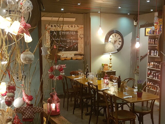 Pour le déjeuner, ou le dîner, nous vous proposons principalement des galettes, des salades composées, des assortiments de charcuterie "fait-maison" ou de fromages produits localement !